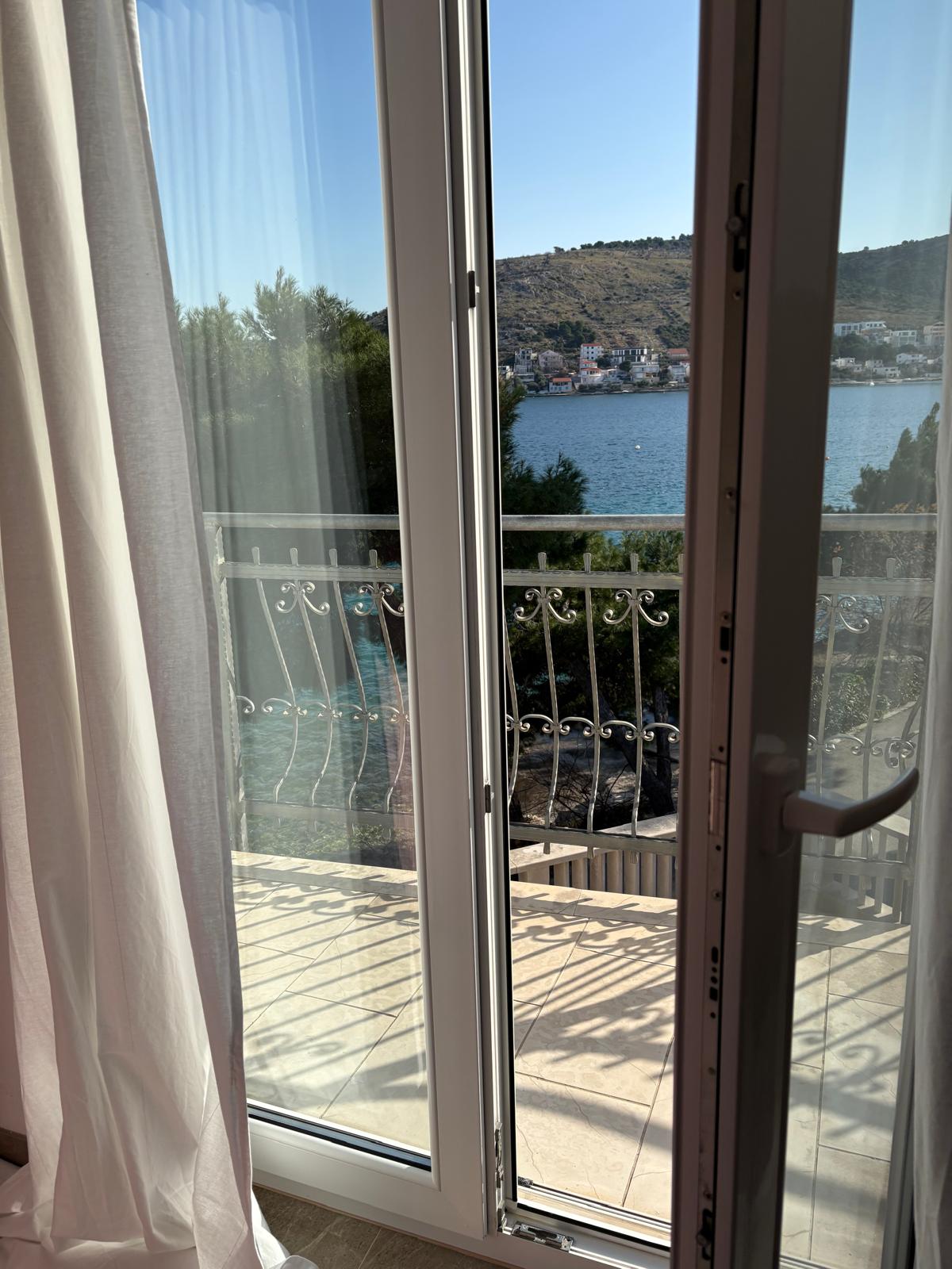FAST WIFI 7 Connection! The small room is located on the top floor & offers nice views over the bay of Trogir. You can even see Split in the distance, with Mosor mountain behind it. The Room is perfect for 2 people. Other features of the room are: Kitchenette, AC, 1 small Bathroom and a 43inch Smart TV with Netflix, etc. You can see directly out to the sea while laying down on the bed (180cm x 200cm). The balcony is a decent size. There is a table with 2 chairs and 1 deck chair for tanning.