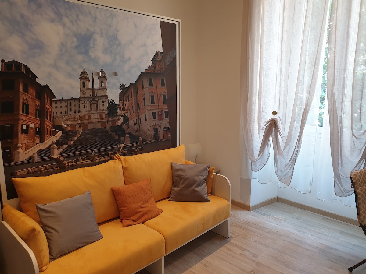 Cozy property is located near the Basilica of San Giovanni in Lateran. Recently renovated and consists of a spacious double bedroom and a living room with a French sofa bed, a table, a bathroom and a small equipped kitchen. Free wi-fi, 2 smart TVs and summer air conditioner. The apartment is located 2 minute walk from the San Giovanni stop (both metro A and C) and just three stops from Termini station and a 15 minute walk from the Colosseum and the Imperial Forums.