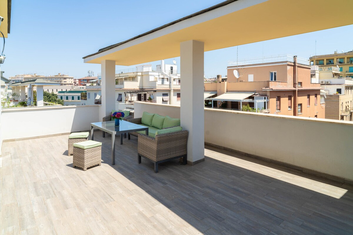 Confortevole&elegante con un terrazzo/solarium per il tuo relax. Ultimo piano di un palazzo storico nel bel quartiere centrale di S. Giovanni; è in strada tranquilla a pochi passi dalla fermata della Metro (Piazza Re di Roma). Ristrutturato con finiture di pregio con tutti i servizi: ascensore, terrazzo esclusivo, lavatrice e asciugatrice, lavastoviglie, ecc. ottimi ristoranti e negozi, il Colosseo si raggiunge in pochi minuti a piedi con belle strade