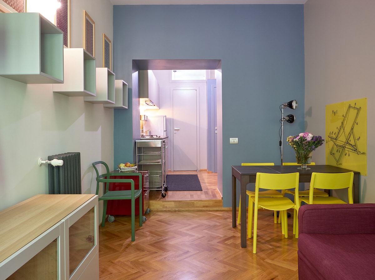 My accommodation is close to the Basilica of San Giovanni, the Scala Santa and Santa Croce in Gerusalemme. At 1km from the Colosseum, near Santa Maria Maggiore and Circo Massimo, it is located two Metro stops from Termini station. It is well connected by metro, bus and trams. It is suitable for couples, groups of friends, those traveling for work and families, even with children. It is very bright and the spaces are large and colourful.