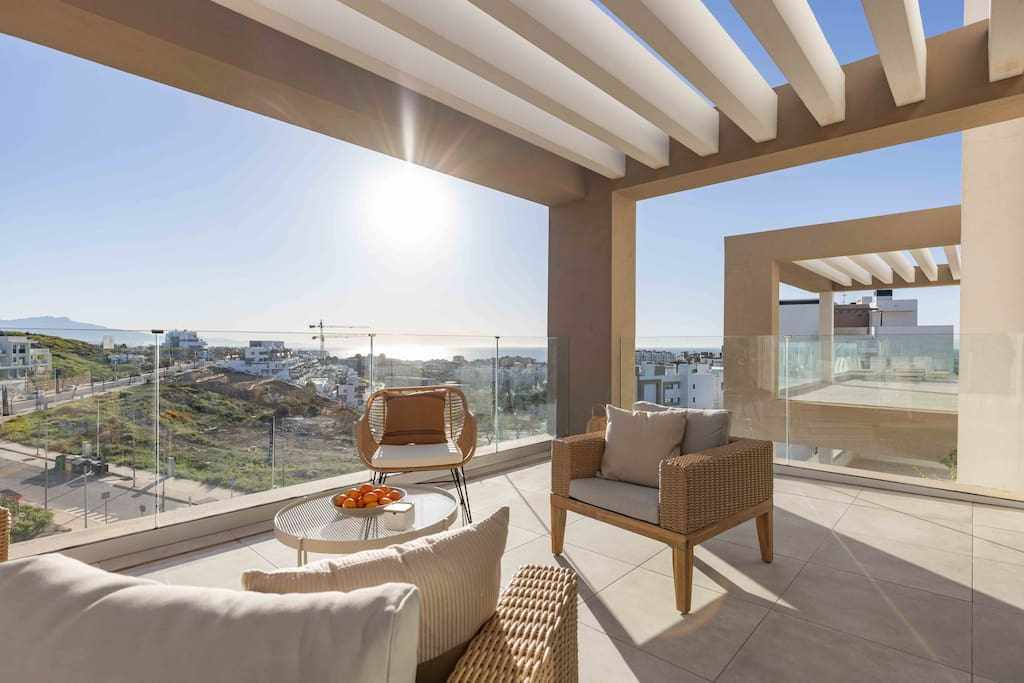Luxury Penthouse with Panoramic Views in Alcaidesa This elegant penthouse offers breathtaking views of the sea, La Hacienda Golf Course, and the Rock of Gibraltar from its expansive terrace. Whether you're enjoying a morning coffee or an evening barbecue in the stylish outdoor lounge, the scenery will leave a lasting impression.