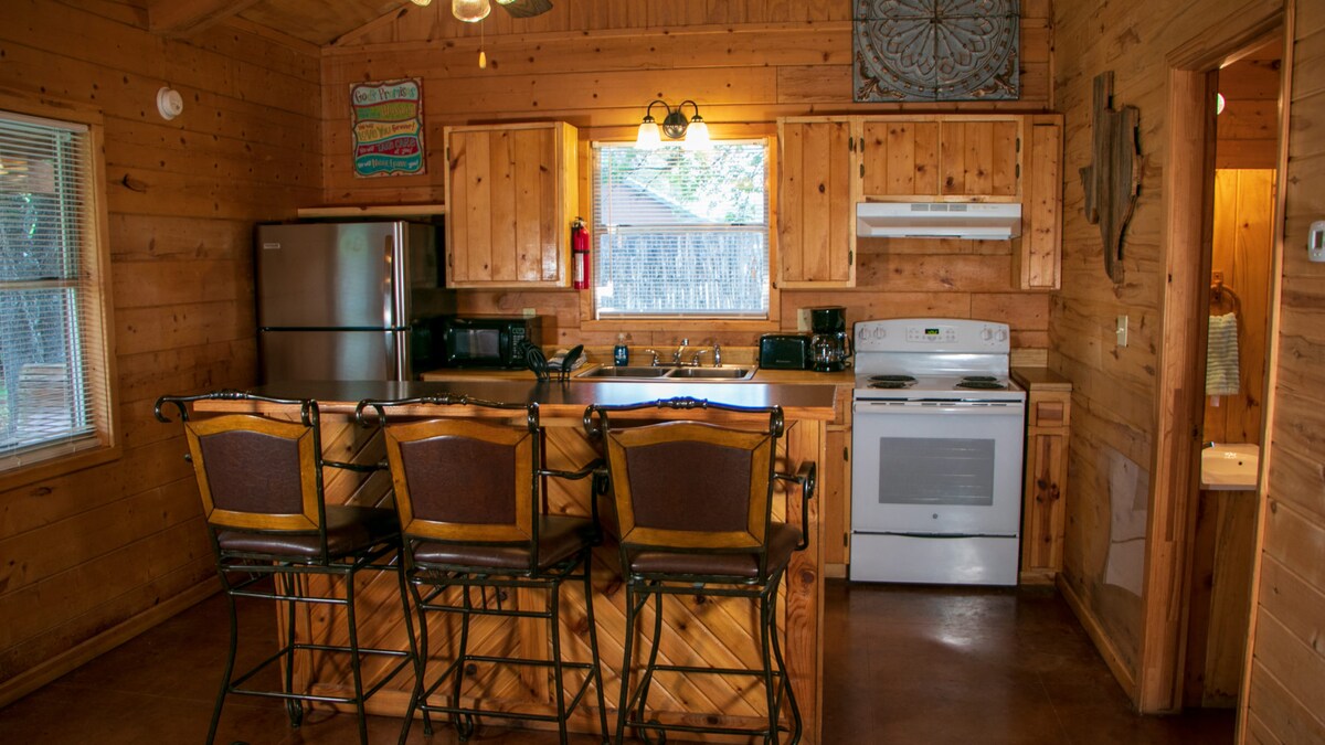 Escape to our studio-style Bunkhouse Cabin, perfect for up to 8 guests with two queen beds and two full beds. Enjoy a fully equipped kitchen, cozy living area, and communal fire pit for evening gatherings. Located just half a mile from the Bent Rim Bar and Grill, the official stop of the Three Twisted Sisters, you’ll love the convenience and local dining. Explore the nearby Frio River and Garner State Park. Free coffee included! Book your stay today for a memorable Texas Hill Country adventure!