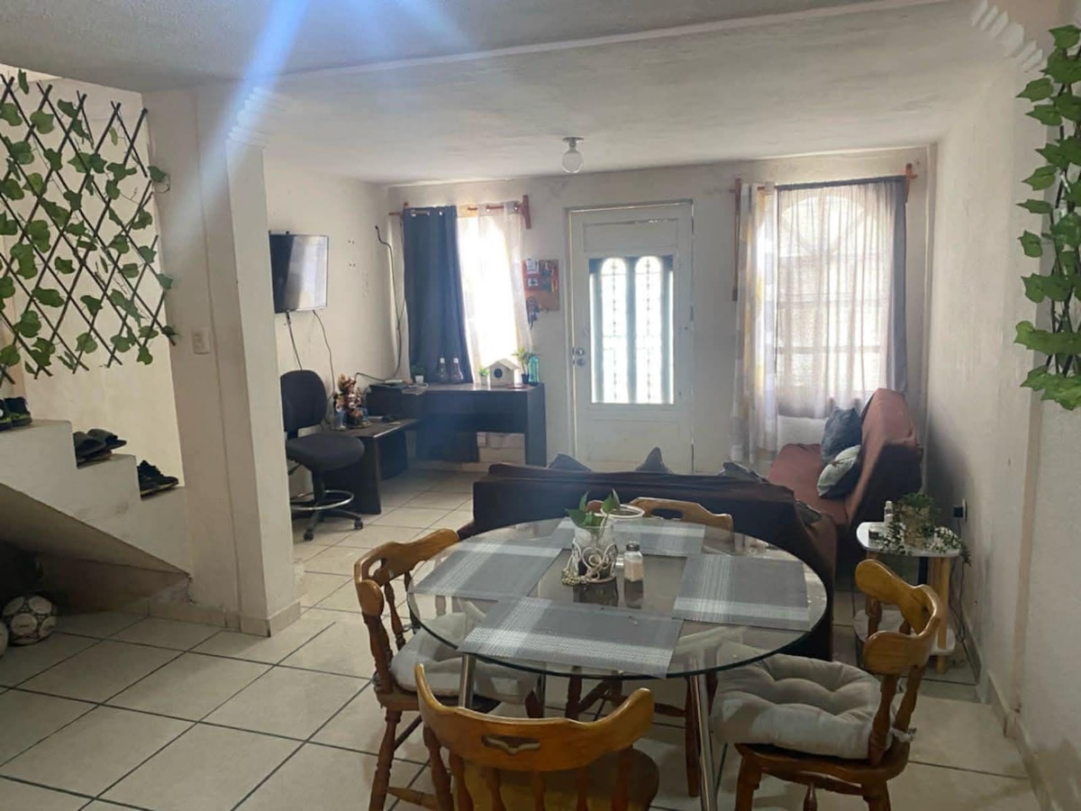 Relájate con toda la familia o grupo de trabajo, este alojamiento donde la tranquilidad y paz se respira, sentirás ese descanso que se requiere para continuar con la aventura del día a día ------------- a una hora en carro del pueblo mágico de Real de Catorce, en pleno corazón de la ciudad de Matehuala, ubicada a una cuadra del parque del pueblo y a cinco minutos caminando a la catedral, mercado municipal y presidencia, así como a 15 minutos caminando Soriana y Walmart, con cochera tech