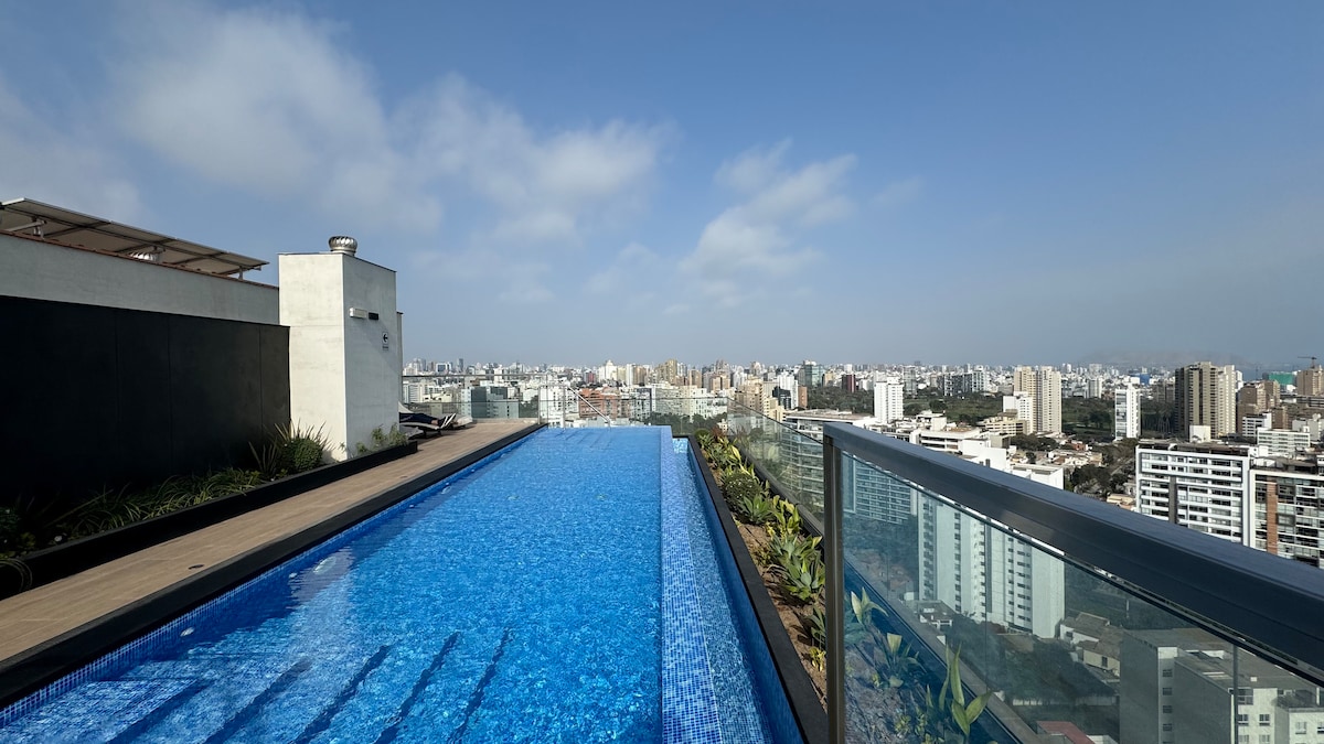 Disfruta de una experiencia con estilo en este alojamiento céntrico, donde podrás disfrutar de la piscina con borde infinito y deleitarte con una vista de toda la ciudad y el mar. Y si tienes cosas laborales que atender puedes realizarlo en las oficinas Coworking que están a tu disposición, además nuestros huéspedes tienen acceso a la zona de gimnasio durante su estancia, para que puedan mantenerse activos y disfrutar de un estilo de vida saludable.