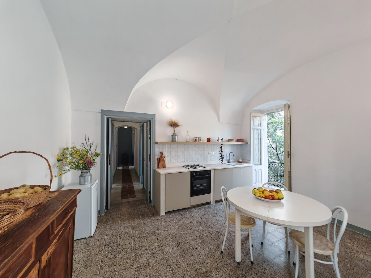 Casa Melograno is a three-story house with a charming small garden. The ground floor features a spacious kitchen, while the first floor includes a living room (which can also serve as a bedroom) and a bathroom. The bedroom on the second floor is accessible by a ladder. Casa Melograno has been tastefully renovated by us. Please note, it is not suitable for young children under 6 years old due to the lack of a banister on the stairs and the ladder leading to the top-floor bedroom.