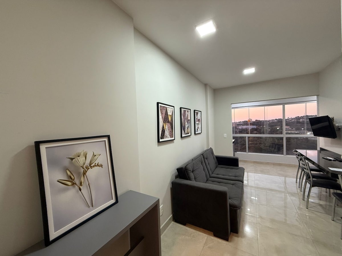 Perto do centro da cidade +com vista linda pra serra de Caldas ,ambiente tranquilo e muito confortável , com piscinas aquecidas , Ofurô , saunas , quadra de jogos , academia , e muito mas .. portaria e segurança 24horas , ideal pra sua família descansar e desfrutar