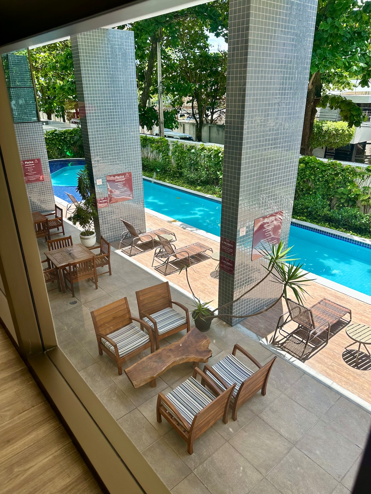 Um FLAT recém-reformado localizado dentro do melhor hotel de Recife. Belíssimo projeto de Romero Duarte. Traga suas roupas e nada mais! O apartamento é completo em absolutamente tudo. Se deseja cozinhar, terás uma cozinha maravilhosa com vista. Se desejas dormir bem, terás um quarto com iluminação adequada e cama confortabilíssima. Apartamento 100% climatizado, em andar alto com vista espetacular no melhor trecho do mar. Melhores restaurantes e padarias a pé. Academia. Serviços.