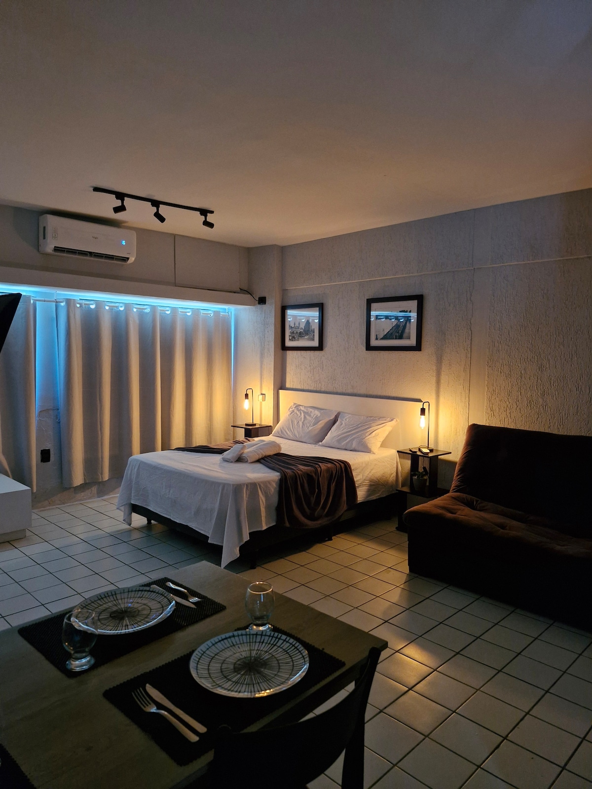 Seja bem-vindo ao seu cantinho exclusivo no Recife! Este Studio moderno e confortável é perfeito para quem busca praticidade, estilo e ótima localização. Prédio seguro, com portaria 24h, perto de mercados e transporte. Perfeito para compromissos no consulado americano, concursos, momentos a dois ou viagens em família. Possui cozinha, Wi-Fi, ar-condicionado split, Smart TV, banheiro privativo com chuveiro elétrico, cama de casal e sofá cama. Acomoda bem até 4 pessoas. 🚨PISCINA INTERDITADA