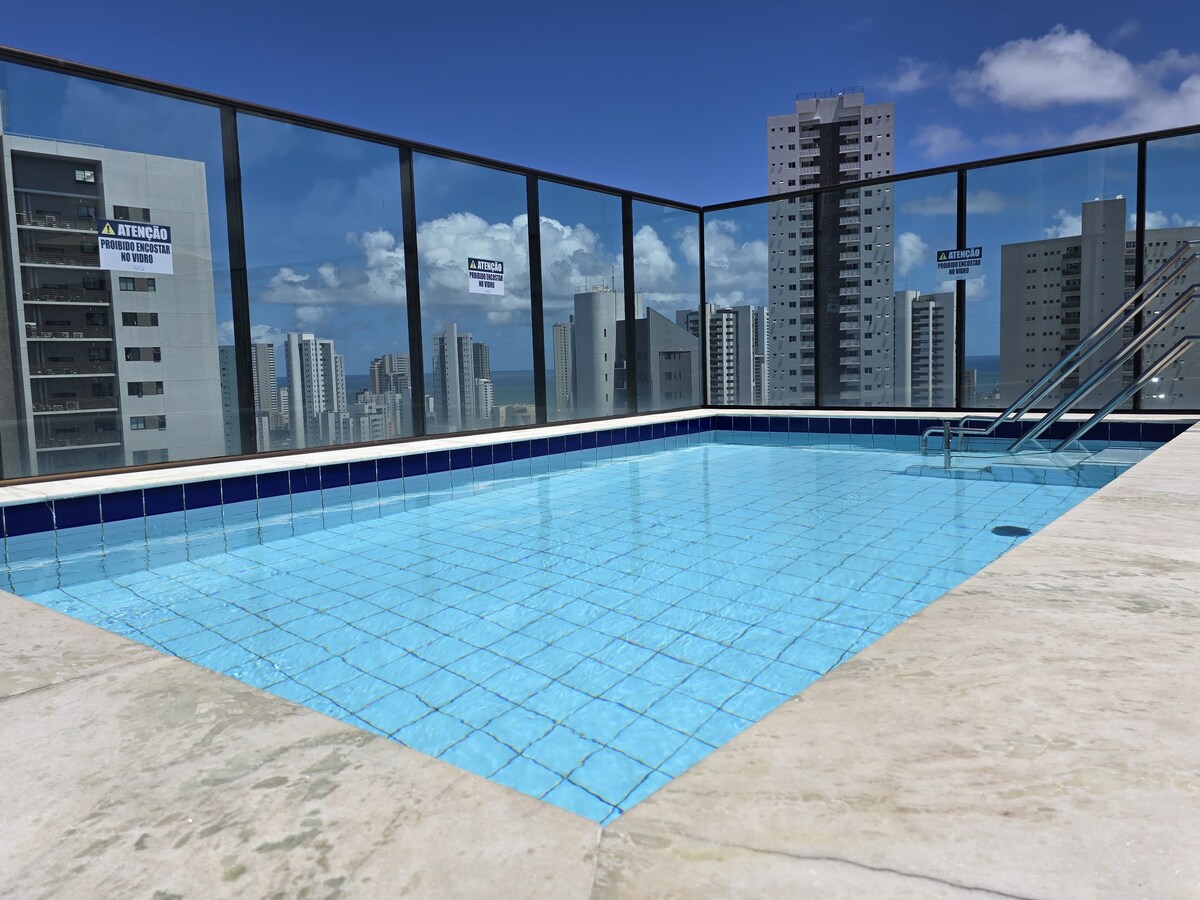 Hospede-se em Boa Viagem com conforto e praticidade, flat no 11° andar, ventilado, nascent, com WC, Wi-Fi rápida, ar condicionado, tv smart 42”, cozinha com cooktop, geladeira, microondas e utensílios diversos. Nas janelas, cortinas transparentes e também black out. Há 01 vaga de garagem. Condomínio seguro, muito organizado, possui marketplace, lavanderia e piscina na cobertura. Prédio próximo ao colégio Boa Viagem, a Av. Domingos Ferreira e com rápido acesso ao shopping Recife e a Via Mangue.