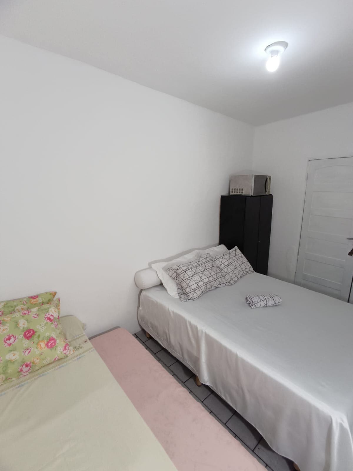 Quarto aconchegante, fica em uma edícula. O quarto dispõe de duas camas de solteiro com clchões de espuma D33, móveis de apoio para comodidade dos hóspedes, tv de tela plana, e um banheiro privativo. Há uma cozinha equipada com fogão e microondas, chaleira elétrica, sanduicheira e todos os utensílios, que fica ao lado dos quartos. O acesso é feito de forma independente que garante privacidade. Há ainda, um espaço para exercícios e uma churrasqueira a gás incrível, para curtição no quintal.