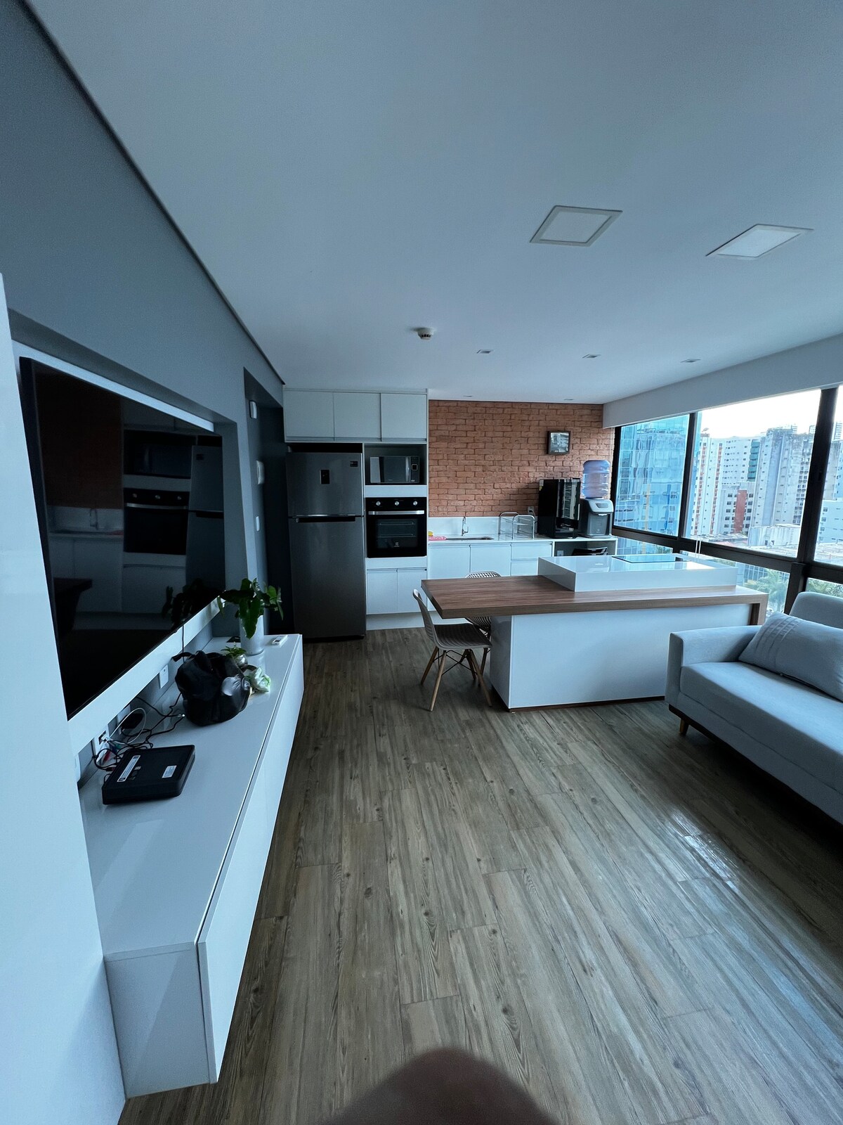 O espaço foi feito pensando nos detalhes para se ter uma boa estadia, você encontrará todos os itens necessários para seu conforte, desde : micro-ondas , geladeira , Smartv com tv a cabo e Netflix. O apartamento é muito central , fica a poucos metros do Shopping RioMar , ao lado do centro de vistos do consulado americano (CASV). O que mais encanta é a vista que você terá durante sua hospedagem.