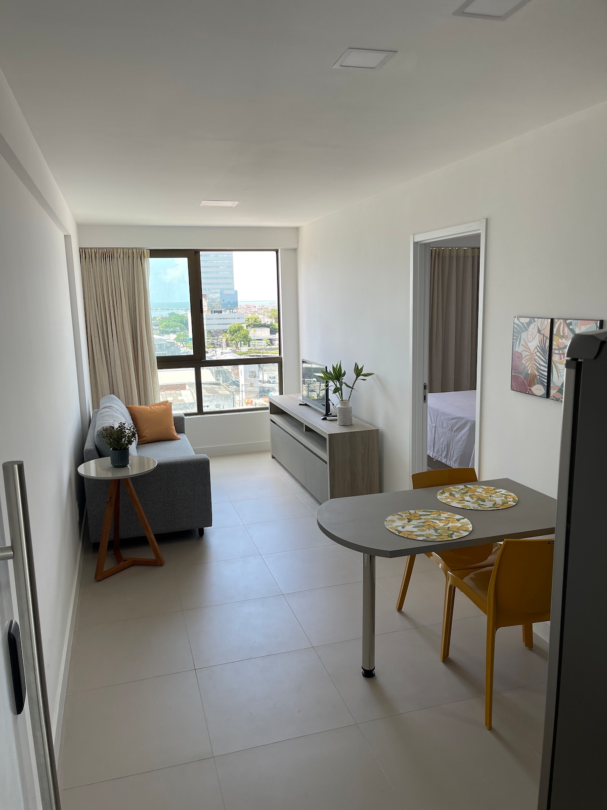 ⭐️⭐️⭐️⭐️⭐️Quarto e sala, esta em uma excelente localização de Boa Viagem, com cama de casal e um sofá cama, cooktop e microondas, 2 ar-cond (Split), 2 Smart Tv, wifi, armário, espelho, mesa de trabalho, mesa de jantar, utensílios e eletrônicos de cozinha, peças de cama e banho. Vaga de garagem, moveis planejados, salão fitness. Próximo ao Shopping Recife (5 min a pé), a praia (10 min a pé) e em frente ao Mix Matheus (Supermercado com utilitários). Academia, piscina, sauna e restaurante. Seguro