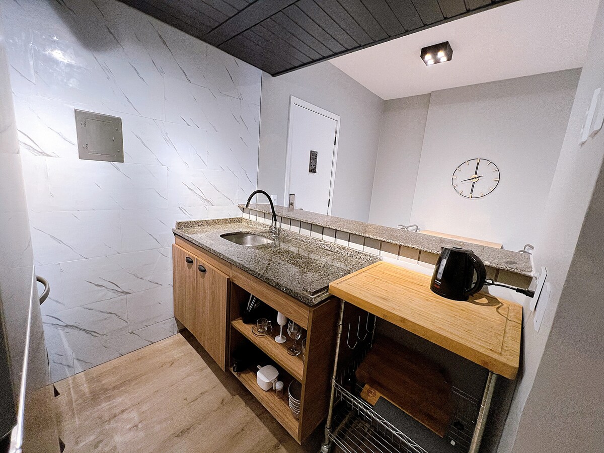 Apartamento lujoso e alto padrão com serviço de limpeza, recepção 24 hs, piscina, academia, sauna, lavanderia, restaurante e conveniencia. Apartamento bem completo com eletrodomésticos novos inox, smart tv , ar condicionado, toalhas, lenços e cozinha completa.