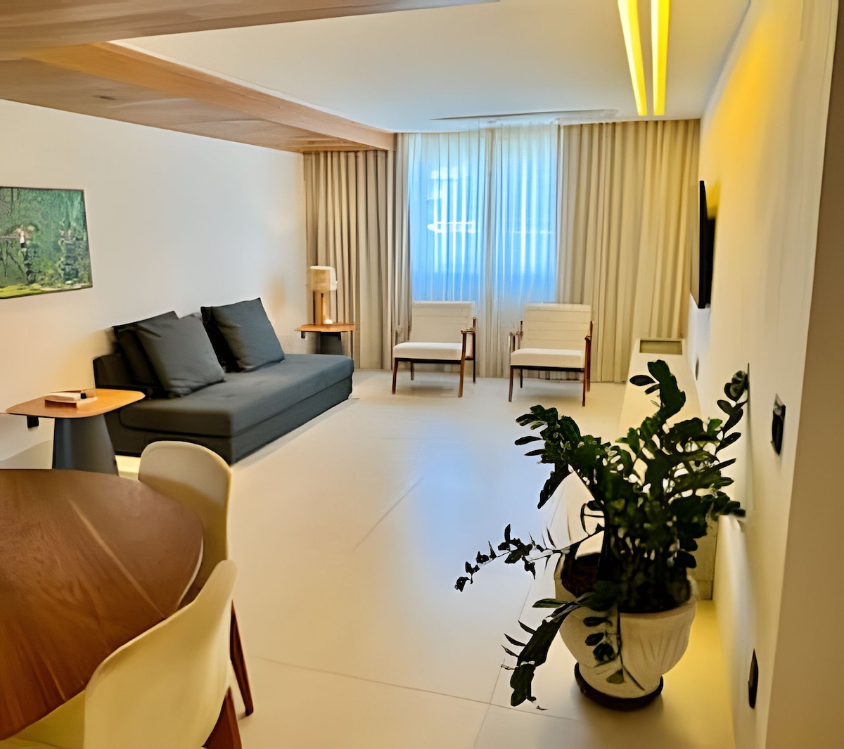 Viva uma experiência incrível nesse espaço super aconchegante com todo conforto que você merece, fizemos pensando em você. Dispomos de Smart TV 50", máquina LG lava e seca dentro do flat, microondas, forno, cooktop, depurador, geladeira duplex frostfree, cafeteira nespresso, cafeteira elétrica, utensílios completos. Flat com acessibilidade para pessoas com mobilidade reduzida e cadeirantes. Piscina com cadeira elevatória para que as pessoas com mobilidade reduzida possam usufruir.