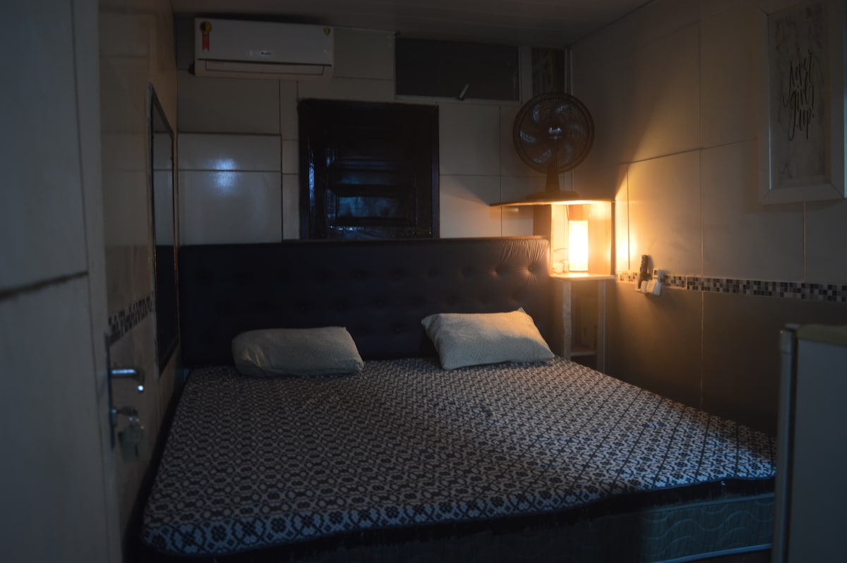 Essa acomodação oferece cama box casal, cama de solteiro, frigobar, smart TV e banheiro privativo.