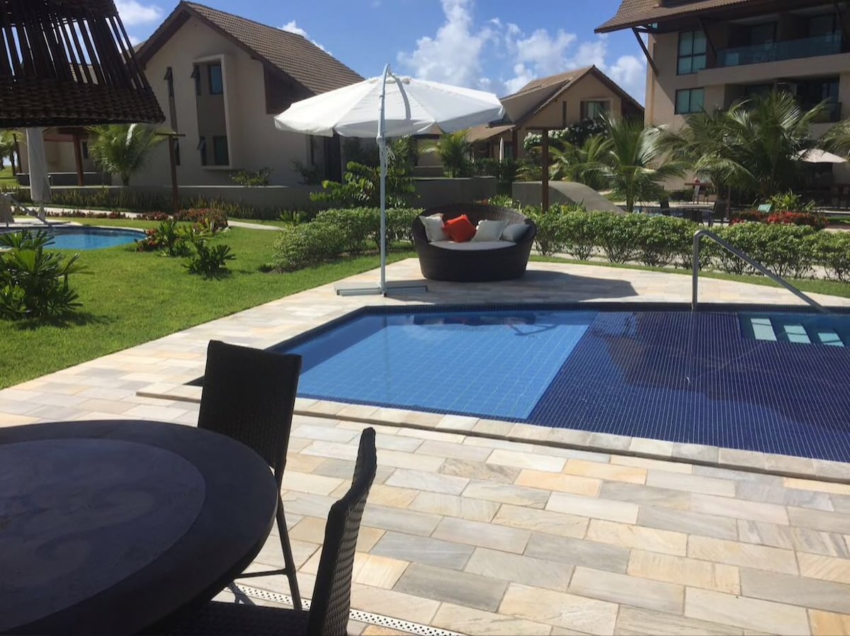 Bangalô novo de frente para o mar com 7 quartos, piscina privativa, varanda gourmet com churrasqueira. Excelente lugar para férias em família inesquecíveis. Para quem procura conforto, paz e tranquilidade com segurança e estrutura completa de condomínio (pista de corrida, bicicleta, academia, quadra poliesportiva, quadra de tênis, beach tennis, cinema, brinquedoteca, sala de cinema, sala de jogos, restaurante, conveniência, recepção 24h, equipe de manutenção).