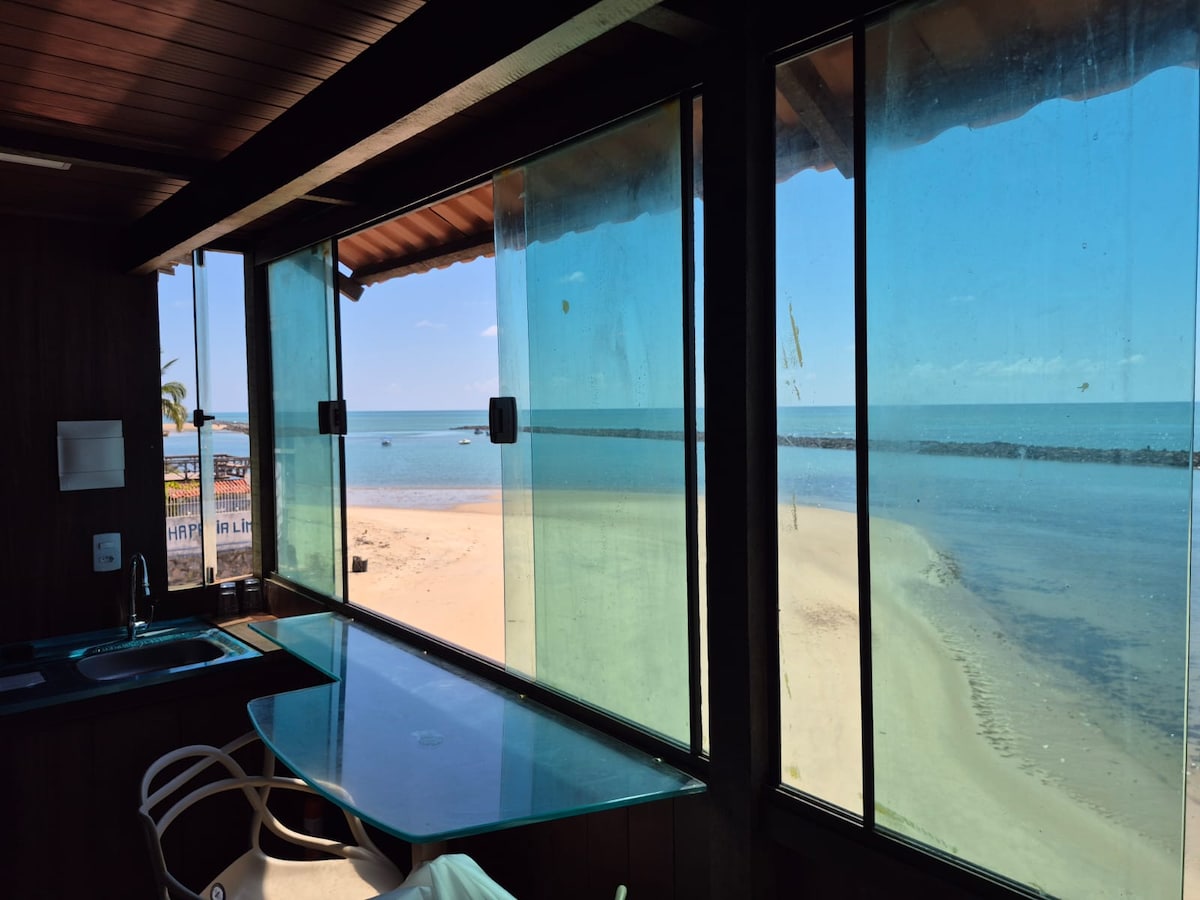 Acolhedora suíte externa à beira mar, localizada na praia paradisíaca da Ilha de Itamaracá, próximo ao Iate Clube. É um trecho lindo de praia, que, além de oferecer um banho de mar gostosíssimo e muito tranquilo, sugere longas caminhadas numa paisagem relaxante.