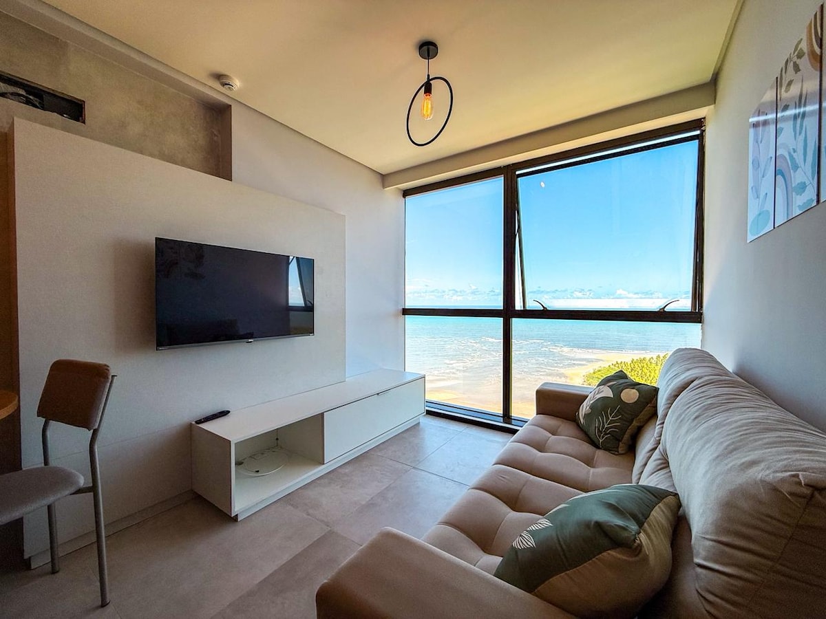 ✔️Flat no 3°Andar em frente ao mar a 20 passos das areias da Praia e apenas 9 minutinhos caminhando até a Famosa Rua das Sombrinhas, que fica no Centrinho (Vilinha) de Porto de Galinhas. ✔️Varanda privativa com vista para o mar, ar condicionado, smart tv 55", piscina, academia, estacionamento rotativo. ✔️Ideal para até 3 pessoas, casais, roupa de cama e toalhas de banho são fornecidas. ✔️Veja o nascer do sol sem sair da cama, em dias de céu aberto e conforme a estação do ano.
