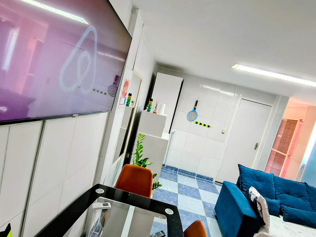 Espaço bem equipado com suíte. Possui ar condicionado, tv smart,frigobar,cama de casal e guarda roupas. Cozinha externa compartilhada, equipada com fogão, geladeira, mesa, cafeteira, sanduicheira, micro-ondas, dentre outros. Tem churrasqueira com área aberta para lazer. A cozinha é bem equipada com o necessário para preparar suas refeições. O ambiente é tranquilo, familiar e muito bem localizado. Próximo ao aeroporto dos Guararapes, centro da cidade, cidade universitária, Boa Viagem, Olinda...