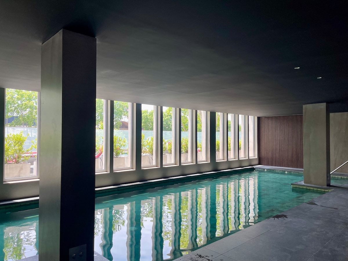 迷人的单间公寓-温控泳池-健身房-共享工作空间