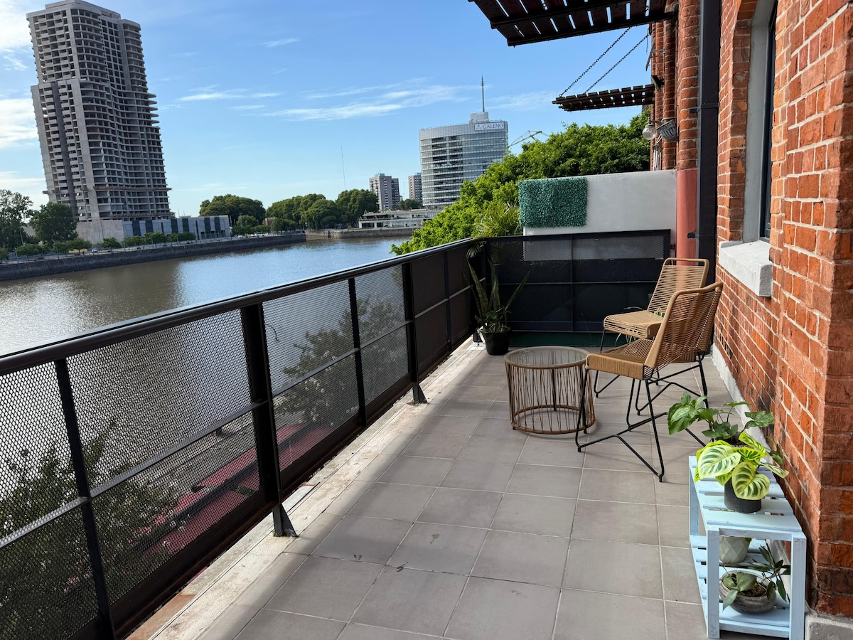Located in the historical Pasaje Santamarina, close to the heart of San Telmo, and reached through one flight of stairs, it has a living area with a fireplace and an integrated kitchen, 2 bedrooms (one in an open mezzanine, with a desk), an entertainment center with an LCD TV (with Chromecast, no cable), a bathroom (with shower box, no tub), and a walk-in closet. Features Wi-fi connection and a central air conditioning system. Very quiet and light-filled. Easy access to Buenos Aires attractions.