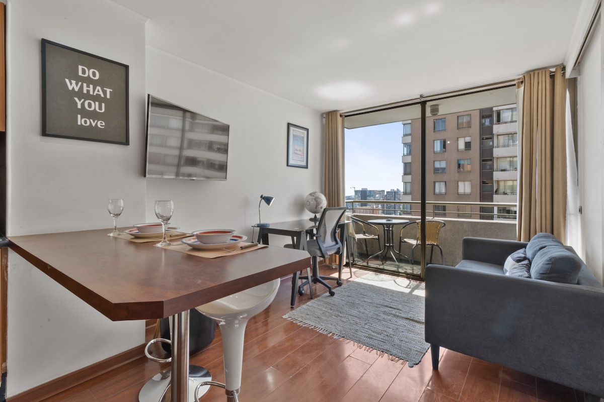 1 bedroom apartment, fully furnished with everything you need for an excellent stay, terrace on the 19th floor with a beautiful view of the Andes mountain and the city. The location is ideal for discovering Santiago on foot, close to two main tourist attractions and the metro station (Bellas Artes), Parque Florestal, Cerros San Cristóbal and Santa Lucia, Plaza de Armas, Patio Bellavista and Lastarria, restaurants and cafes. The apartment is ideal for couples, adventurers and business travelers.