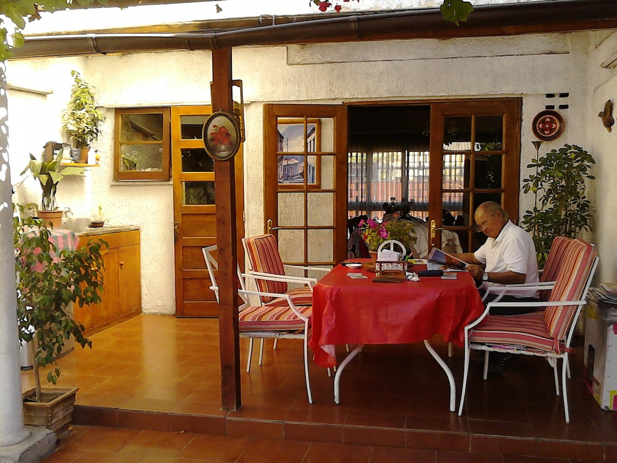 Casa de huéspedes dentro de nuestra propiedad pero totalmente independiente, solo se comparte la entrada del antejardín. Alojamiento en el centro de la comuna de Providencia. Tendrás todas las comodidades necesarias para tener una estadía ideal. Una excelente ubicación y conectividad, a menos de 100 pasos de la locomoción colectiva "MICROBUS" ,comercio muy cerca. Esperamos que tu estadía sea fantástica ya que nos preocupamos de cada detalle para poder ofrecer lo mejor. Te sentirás en casa!!