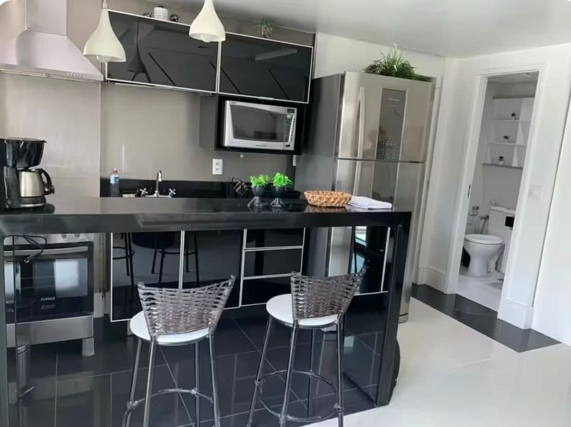 Experience the ultimate luxury in this stunning Barra da Tijuca penthouse. Remodeled, it offers breathtaking views of the beach and top-tier security, it offers pool, sauna, gym and more. Two floors: 1st- bedroom, bathroom. 2nd- living room, half bath, kitchen, and an outdoor area if our jacuzzi, dining table, and barbecue grill. Easy access to barbecue and jacuzzi from both floors. Don't miss the chance to indulge in an extraordinary beachfront paradise at this lavish penthouse. Book now!
