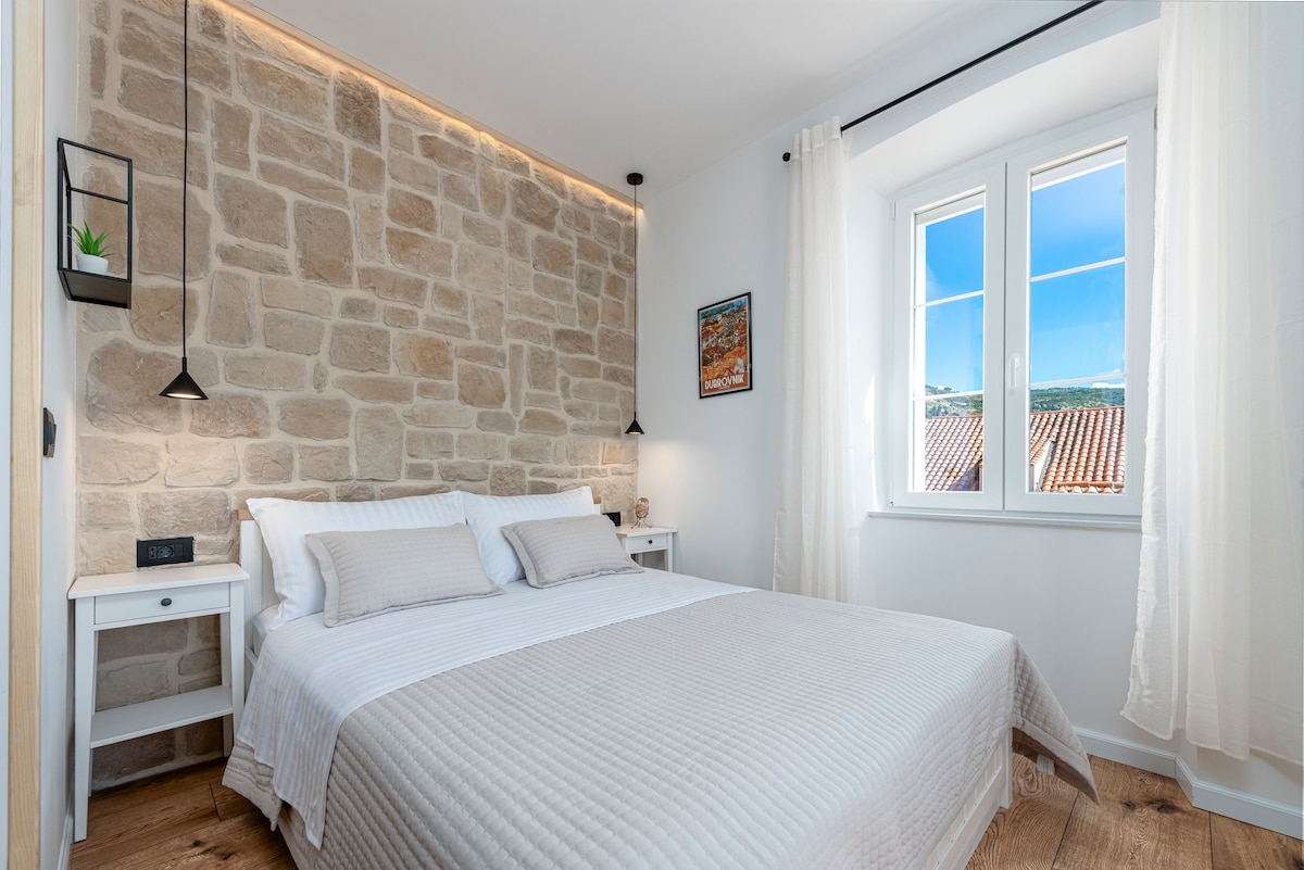 Modern stone apartment on the ground floor and is fully fitted for 2 people, located in the heart off the Old Town of Dubrovnik and includes one bedroom with double bed, bathroom, living room, fully equipped kitchenette, AC, Wifi, TV, washing machine, iron, clean linen and towels, sound proof windows, close distance to buss stop, bakery, bars, restaurants, and beaches. Self check in with the lockbox, or check in with assistance of host upon request. Visit our recommendation what to visit