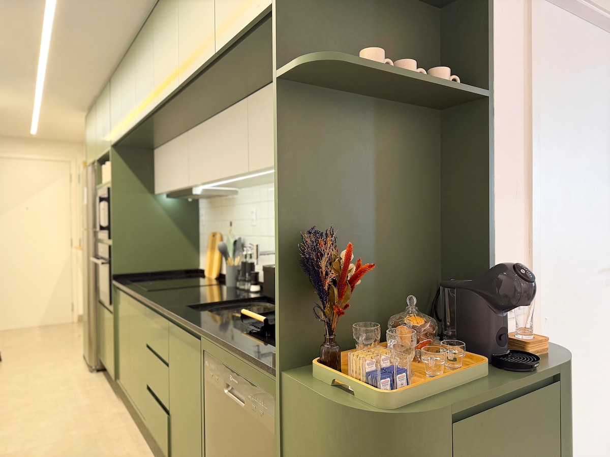 Studio moderno com Cama Queen a 200 m da praia