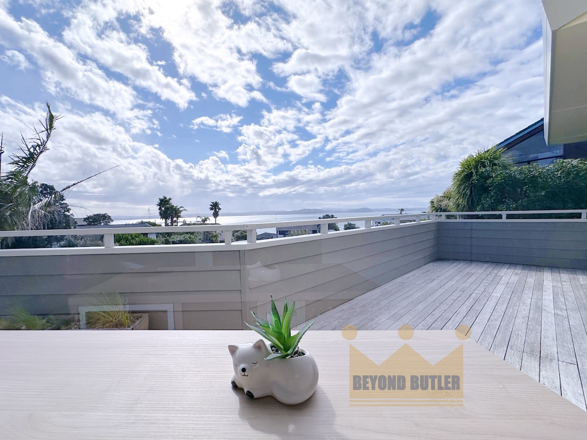 ++ Apartment style accommodation with its own private entrance, living spaces and outdoor area. ++ Elevated setting that commands interesting views of the Milford Marina and the Hauraki Gulf including Rangitoto island. ++ 5 min easy stroll to Milford Beach and shops or a 10 min walk over to Castor Bay beach. ++ Free parking. Both the main house and the apartment are located down a right-of-way driveway that provides secure off-street parking during your stay. ++ Unlimited Fibre 100 Broadband internet ++ Prime location with accessibility to beaches, shopping, restaurants, cafes, golf courses and local buses. Kitchen, Dining and Living Room ++ Spacious, well appointed open plan kitchen, dining and living space. ++ Fully equipped kitchen that is well set up for any guests wishing to enjoy the comforts of the apartment. The kitchen includes a large fridge/freezer, cooktop, oven, microwave, dishwasher, cutlery, plates, and essential cooking appliances and utensils. ++ The apartment also has its own private deck complete with sole use of a Weber Q BBQ. ++ Nespresso coffee machine for a fresh cup when the need requires. ++ Dining table with four dining chairs. ++ Samsung HD LED TV with Apple TV ++ The Apple TV provides complimentary access to TVNZ OnDemand (including live streams for 1, 2 and Duke), ThreeNow (including live streams for TV3, Bravo and Edge TV) Netflix, Lightbox, Amazon Prime and Redbull TV. Laundry and Bathroom ++ A newly appointed bathroom with shower, vanity and toilet. ++ The laundry includes a newly fitted front loading washer and condenser dryer for exclusive use by our guests. ++ For your convenience toiletries are provided along with a hairdryer. Bedrooms Both bedrooms are fitted with luxurious Queen size beds - gorgeous linen and towels are also provided. During your stay you will have access to the entire 2 bedroom self contained holiday accommodation. Guests have their own private entry to the apartment which is accessible via a coded front door lock. No keys are required. On arrival we look forward to welcoming you with a breakfast pack which includes locally made muesli / granola, organic milk, free range eggs, a loaf of bread and spreads. Guest are able to let themselves in as the apartment has coded entry. Access and contact details will be provided prior to arrival. A short easy stroll to either the beautiful Milford or Castor Bay beaches. Dining or shopping is also nearby at the Milford shopping precinct. Milford Shopping Centre has some of Auckland's top fashion shops, supermarkets, cafes, and restaurants. Self drive ++ Off-street car parking. Easy access to motorway on/off ramps. Quickest access to our place is via motorway exit 417: Tristram Ave. ++ 35 minute drive to/from Auckland Airport. ++ 15 minute drive to the Auckland CBD. ++ 7 minute drive to Takapuna entertainment and business centres. ++ 12 minute drive to the Albany business centres. Public transport options ++ Readily available taxi / Uber drivers in the area. ++ 50m walk to the nearest bus stop. ++ Bus #822 or #858 for Takapuna or the CBD. There are two streets of same name in the North Shore area. Please ensure that you confirm to your taxi driver or bus driver that you are requiring Castor Bay. We really want you to have a great experience. We look forward to hosting you in the near future.