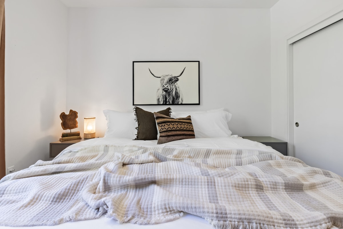 Kick back and relax in this calm and stylish space! Recently renovated, our modern guest suite will feel like your home away from home! Start your day right making a morning cup of coffee in the cozy coffee nook. Enjoy cooking up an afternoon lunch in our fully stocked kitchenette with a microwave, electric stovetop, full fridge, and cookware. Situated close to shops, grocery stores, restaurants, and bakeries, right off highway 5 and 3-5 min from the Civic center and the downtown area