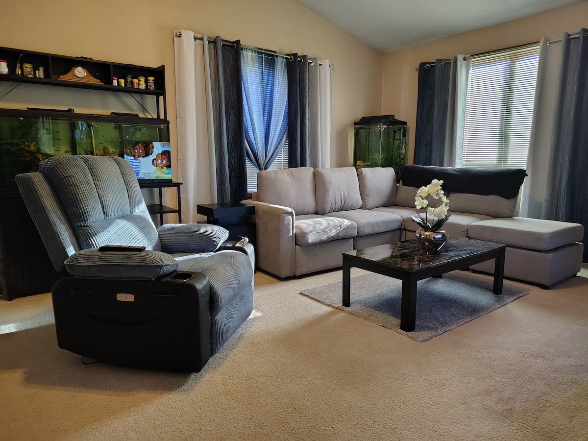 Enjoy serenity and tranquility at our modern home tucked away in a private setting just 5 short minutes from Downtown St Louis. Complementary bottled water, continental breakfast(packaged muffins) and a bottle wine will pamper you the moment you arrive.Unwind in our luxurious multifunction shower+memory foam mattress Test your swing on our scenic driving mat or unwind around the crackling outdoor fire pit. Spa and Special Occassion add-on packages available. Private off street parking.