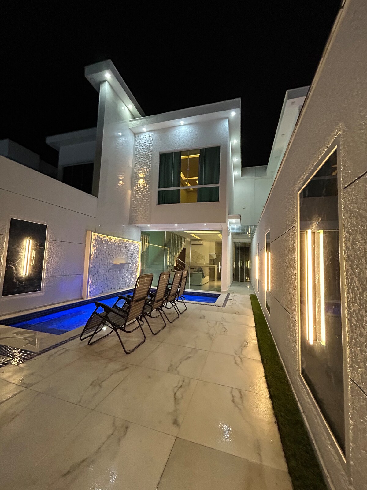 Disfrute de momentos de relajación con toda la familia en este alojamiento tranquilo. Excelente ubicación, fácil acceso y en una zona segura, encontrarás la mayor comodidad para disfrutar al máximo de tu estancia. IMPORTANTE: - Se realizarán limpiezas cada dos días (excepto los domingos) en las áreas internas y externas de la casa, así como el mantenimiento del jardín y la piscina. - El lavado de la ropa de cama se realizará en las máquinas disponibles para ese uso, ubicadas dentro de la casa