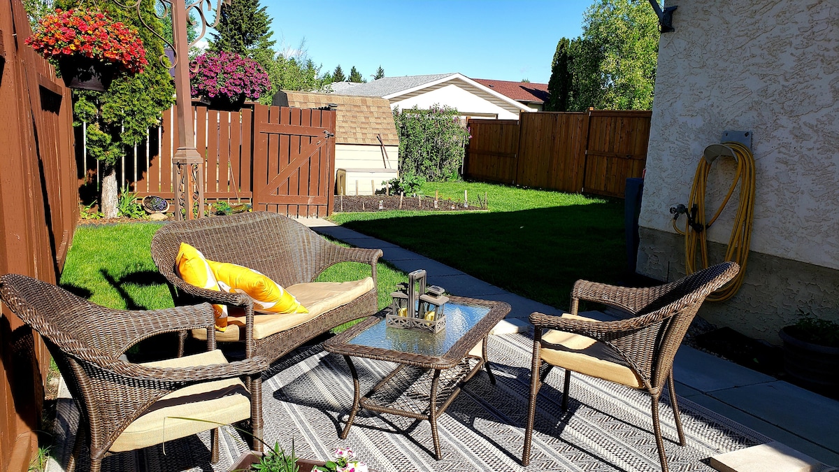 Retreat to this comfortable and fully furnished two-bedroom, almost stair-free, walkout basement suite, with a beautiful walking trail located right behind it: ideal for biking, skating, or taking a stroll. Conveniently located near the Collicut center and Westerner park, it is an ideal base to explore Red Deer. Whether on vacation or a business trip, you can enjoy your stay in this home away from home with TV, WiFi, a full kitchen, a private patio/backyard, and a quiet, dedicated workspace