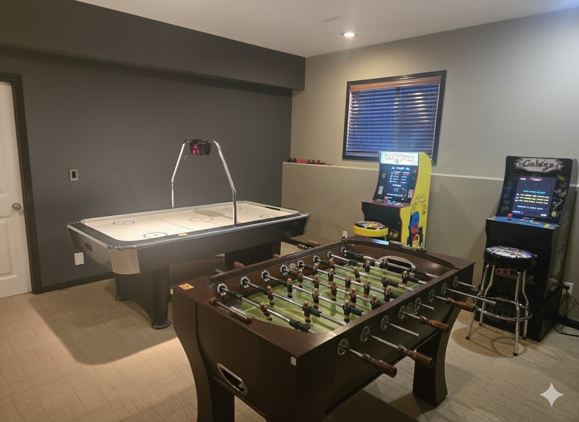 舒适干净的4卧室房源~空调、游戏室和篝火炉