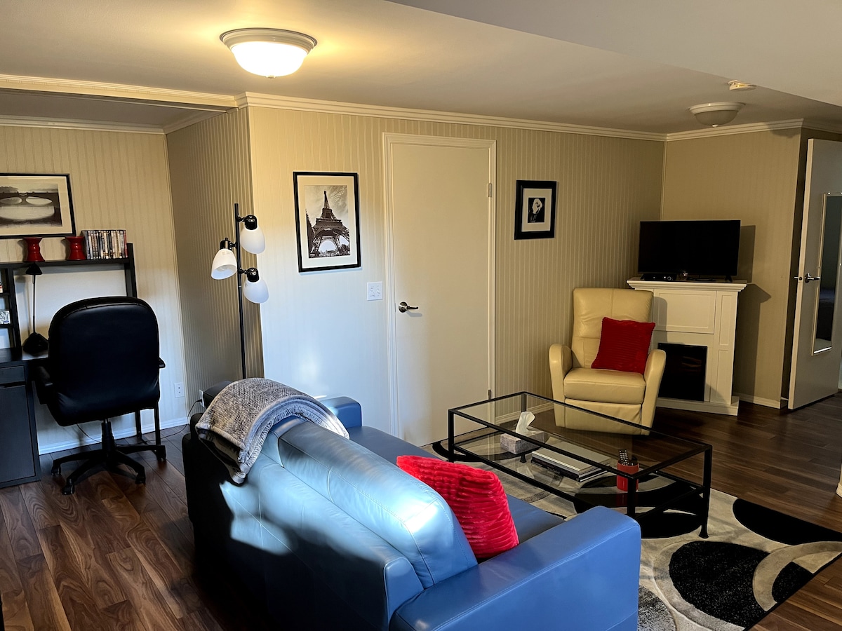 I have a lovely 1200sq ft guest suite in our walk-out basement, it has a private entrance. Great place for you to relax and enjoy. Best suited for family orientated guests. Kitchenette stocked with essentials (No stove). Lots of parking available. No stairs to climb inside or out! Basement is cool in the summer and cozy warm in the winter with out in floor heating. Living room: flat screen tv with Telus OptikTV (basic cable pkg) and Netflix. Wifi.