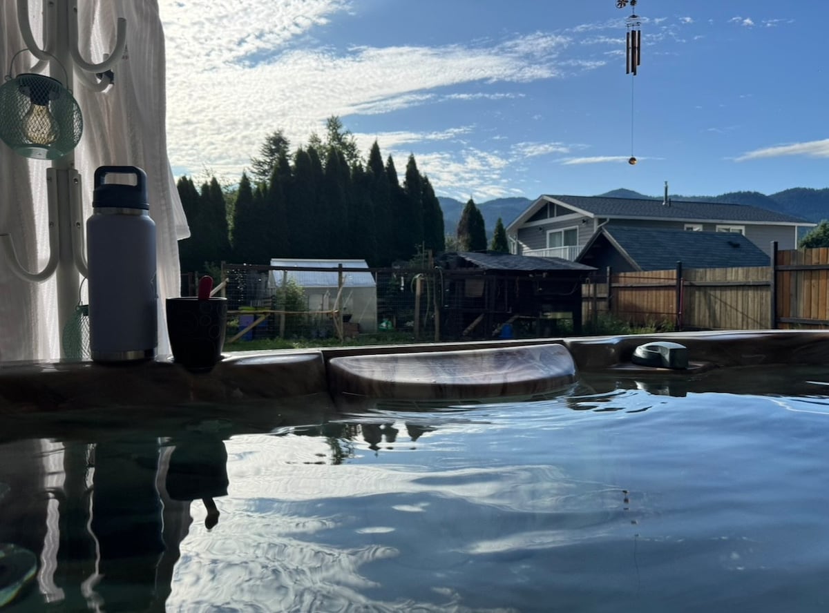 Eat. Soak. Sleep with valley view in the heart of Rossland. Enjoy our three bedroom 1100 sq ft newly renovated house with hot tub and garden. Walking distance to downtown shops, pubs and restaurants. Three blocks from Centennial trail head. Short drive to Red Mountain Resort.