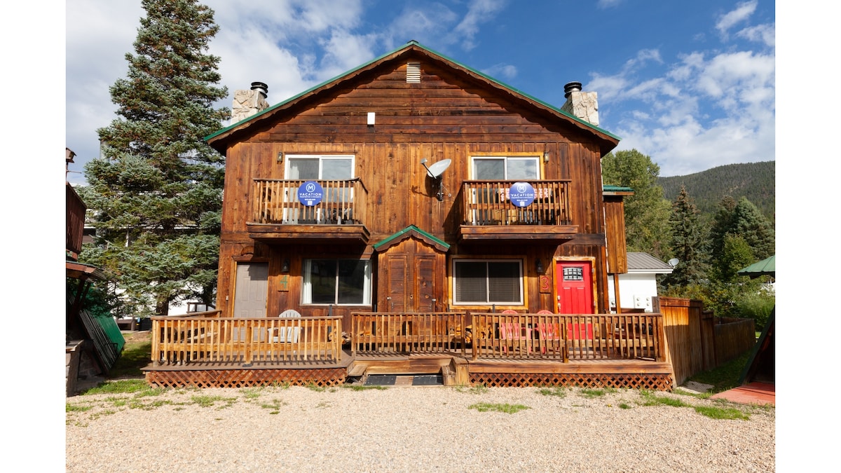 Dear guest, I work hard to make this like a home-away from home. Big porch in front and back, front gets a bit of sun. Cozy cabin within walking distance to all the charm of Red River, Ski slopes, hiking, jeeping, music venues, NO franchises! Everything you need to feel at home. Surrounded by mountains and nature. Big kitchen, sunken living room. Nice dining with a view. Can sleep six but perfect for 4. Lots of extras. Full size washer/dryer too. Enjoy!