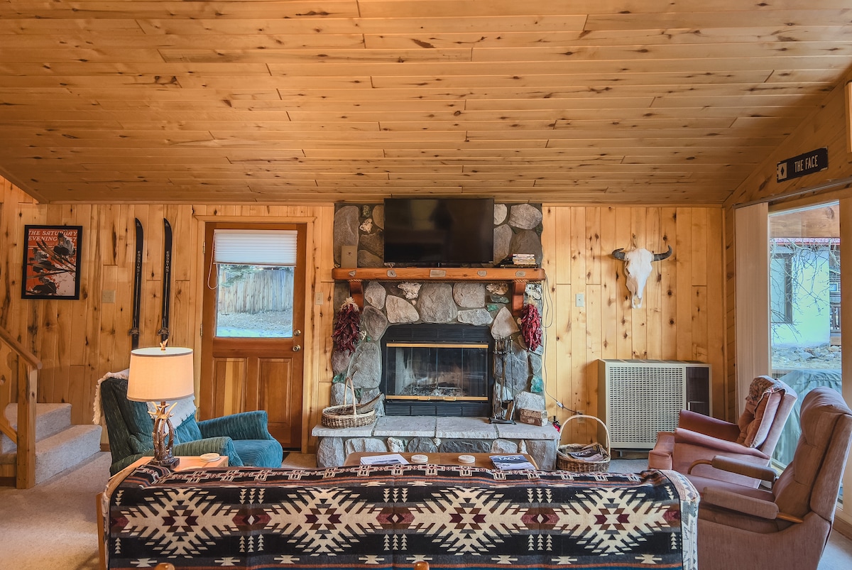A clean and modern, newly renovated 1 bedroom, 1 bath cabin with full kitchen, living room, and gas fireplace. Cabin has 1 king bed and a day bed that turns into a king bed. Mama Bear's Hideaway is situated in the heart of Red River, 100 yards from the ski lifts, across the street from a convenient supermarket, walking distance to Steam Coffee and many other restaurants and shops. Other amenities include free Wi-Fi, fire pit, outdoor grills, private pond w/ fishing available. NO PETS allowed.
