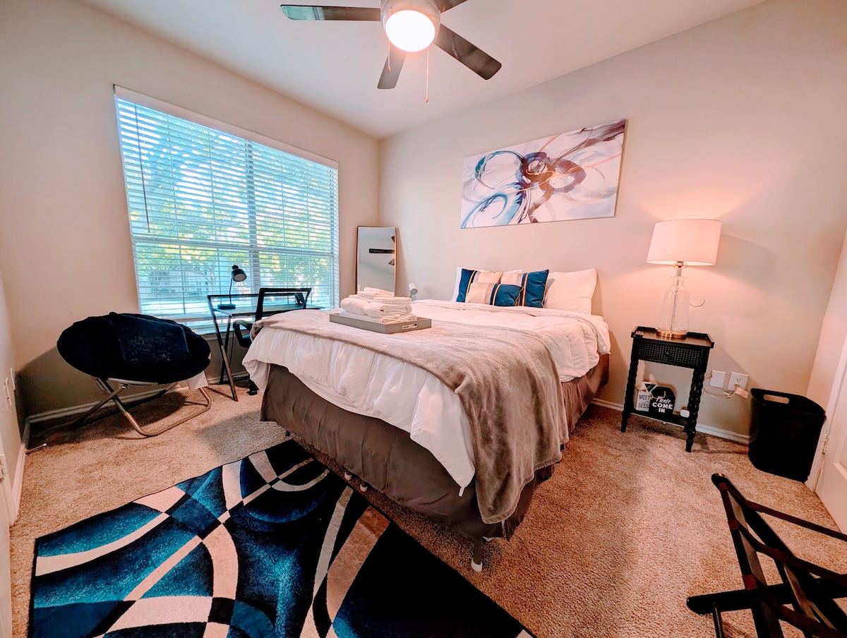 This charming little cottage is new construction, designed in the “industrial farmhouse chic” style. It’s the perfect place for a romantic getaway or a relaxing country adventure. Take in the wooded views from the screened-in back porch, walk down to the lake, or enjoy a day out in downtown Granbury! If you're lucky you may even see the neighborhood road runner. He loves to use our back porch as a hiding spot!We’d love to have you, so come stay a while.