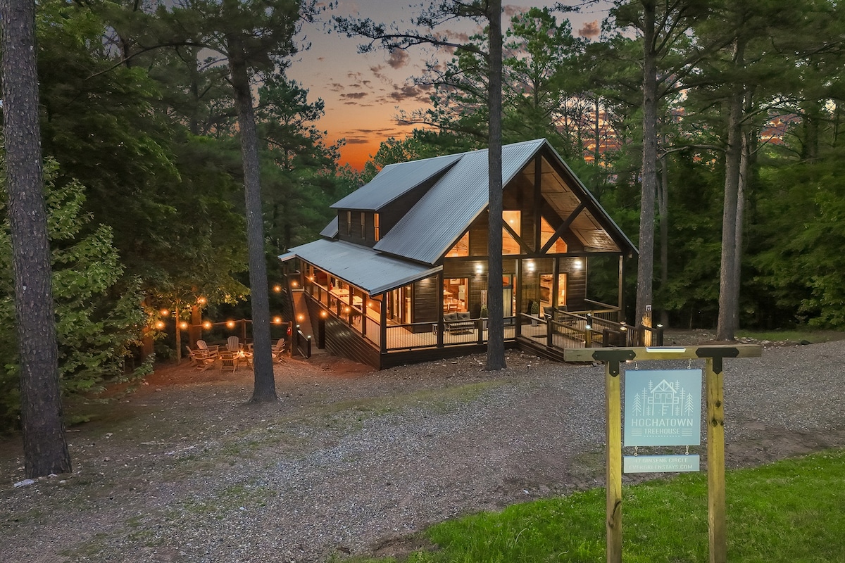 “Hammock Hideaway Broken Bow” ☀ 100” outdoor movie screen ☀ Large hot tub ☀ Giant family size hammock ☀ Outdoor fire pit ☀ Arcade console w/ favorite classics like Pac-Man + Dig Dug ☀ Indoor gas fireplace ☀ Children’s outdoor playset ☀ Corn hole ☀ Axe throwing game ☀ Smores Kit & starter bundle of firewood ☀ Life-size outdoor connect 4 ☀ Hook & ring game ☀ 2 bedrooms; 1 king, 1 twin-over-full bunk bed + 1 queen sofa bed ☀ 3 Smart TVs w/ Amazon Prime, Disney+, Hulu, Netflix, etc