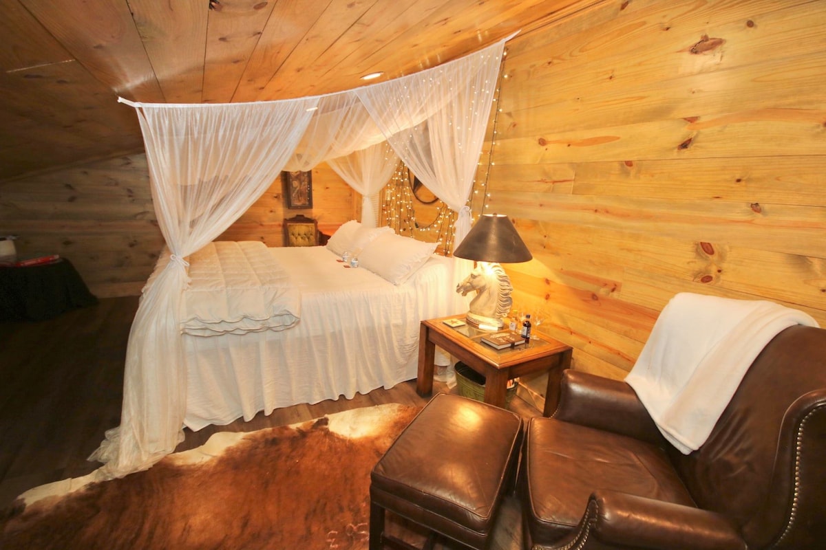 Unwind in this unique, tranquil Boho Loft nestled in the woods of Long Island on Lake Hamilton. Just off Central Avenue, our quiet, safe neighborhood offers easy access to Hot Springs’ top attractions. This cozy upstairs loft in our A-frame home was fully renovated in 2022, featuring a modern kitchen, new appliances, 1 bedroom, and 1 bath. Relax on the covered porch with your coffee and take in the serene forest views. Book your peaceful getaway today!