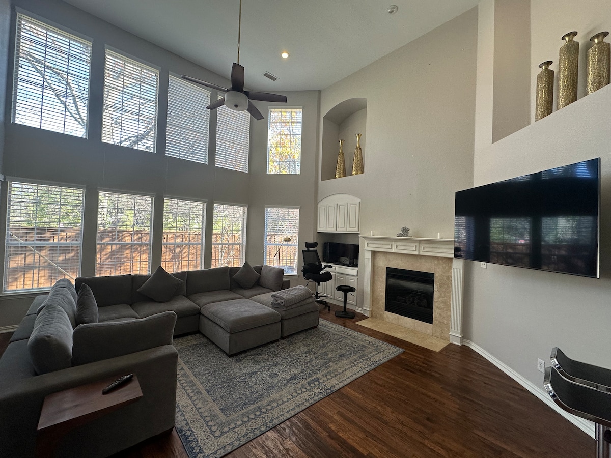 Great upscale villa with 2500+ sq ft 4Br/2.5Ba/3living area/heated pool-spa at your request nestled in a beautiful quiet community. The ultimate backyard with everything you need for outdoor fun. Nearby parks and walking trails. 7 Smart Roku TVs, cable tv, lots of board games. Easy access to Downtown Dallas, DFW Airport, Texas Motor Speedway, Lake Lewisville, Lake Grapevine, Dallas Cowboys ATT stadium/The Sar. Please see pool instructions below.