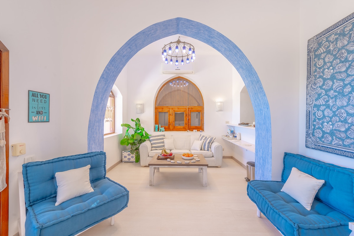 Chill out at our private peaceful studio in the heart of Assalah, and in an authentic beduin neighborhood ( Behind Solaris Dahab and Beit Theresea ) less than 2 min to the sea and 1 min to Assalah markets . And you can enjoy the sea breeze while relaxing in the cozy north-facing outside seating area . We have a strong wifi ( our own router is in the place , not a shared one ) in case u want to get some work done .