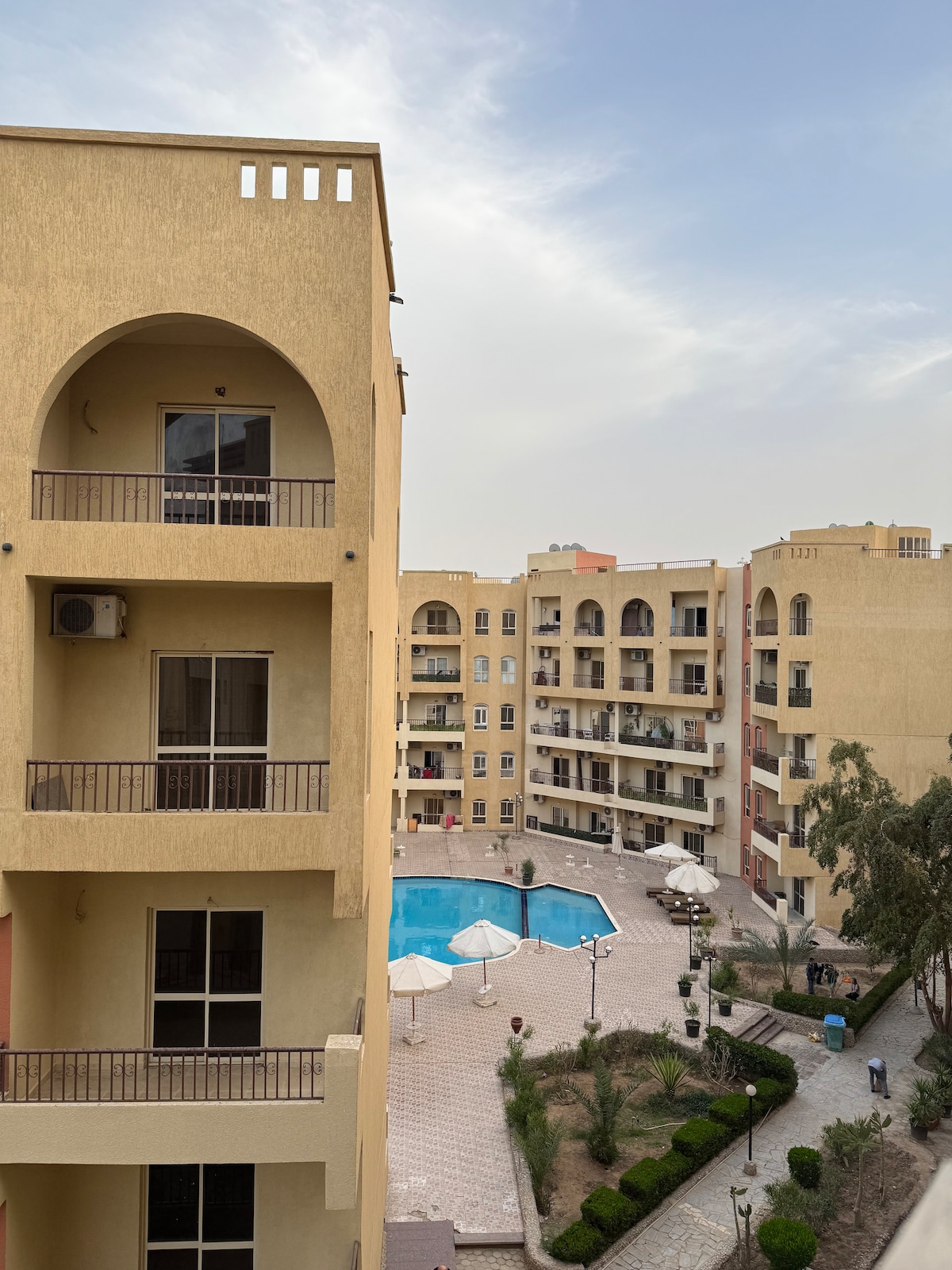 Amazing 1 bedroom apartment pool & sea views in the best place (The View Residence) in the heart of Hurghada in Old Sheraton street. Enjoy 3 pools and private beach. 1 double bed in a room and 2 bed sofas in the living room, suitable for 2 adults + 2 children or 3 adults. washing machine-2 air-conditioners- Tv-Wifi-calm and clean-high privacy and securit-perfect place for vacation. Close to all:- cafes,supermarkets,bazaars,Hurghada Marine. You can go on foot anywhere you want.