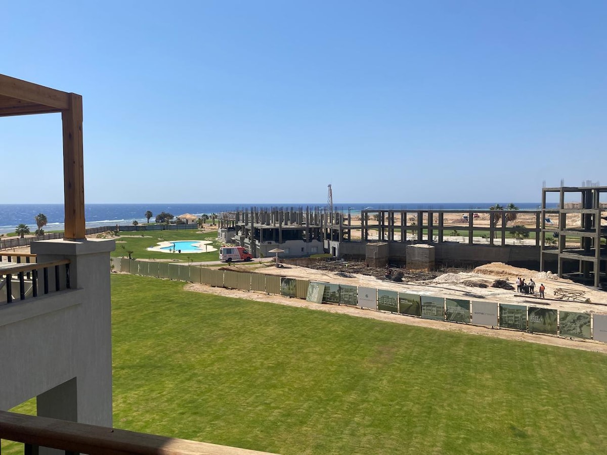 Holiday retreat located in Soma Breeze compound, Somabay is Egypt’s top holiday destination, amazing Snorkeling and Diving spots, Beaches, Golf fields, Kite Surfing, Aqua Park, Carting, Quad Bike, Restaurants, Supermarket, Bars with live music, Horses stable, SPA, music concerts. Apartment is on the 3rd floor which allows a very beautiful Sunny terrace with beautiful sea and mountain views. PS: There is a construction site 100m in front of the apartment, the work in the site ends at 4:30 PM.