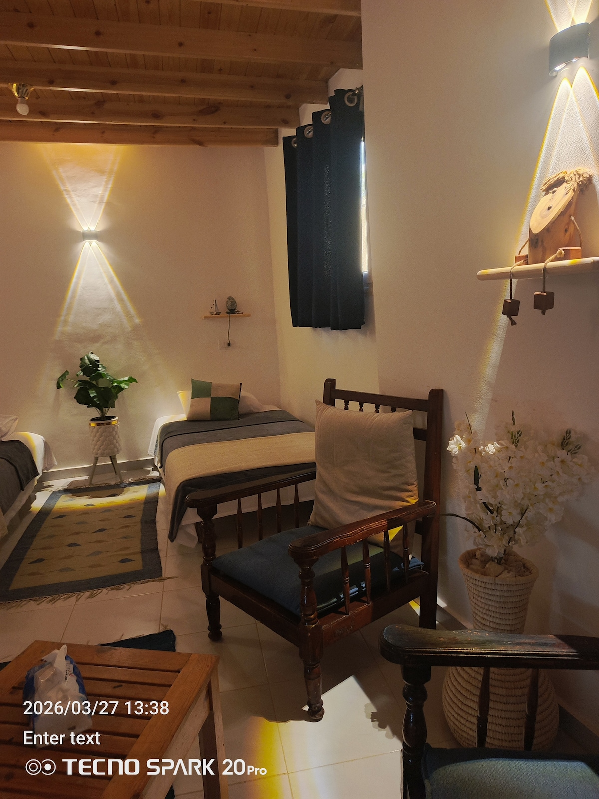 Cozy guest house available for rent in our peaceful shared garden in Asalah, Dahab. Perfect for individuals or couples seeking a tranquil retreat. The house is located close to hamdy falafel restaurant,Ideal for those who appreciate a quiet environment. The house with a private bathroom and fridge but doesn’t have kitchen. We are looking for quiet and respectful tenants.