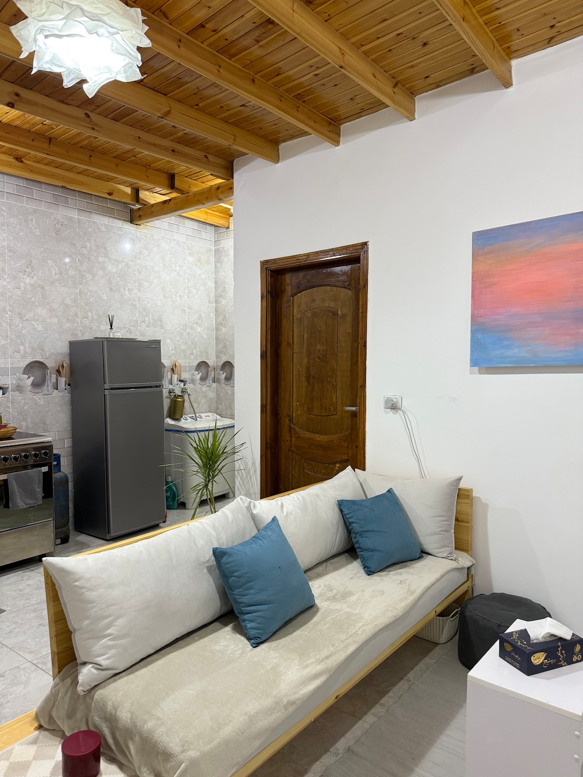 Romantic desert dome just 10 minutes from Dahab. Ideal for couples, this cozy stay offers stunning mountain views and access to a shared wood-fired sauna and ice bath (available at an extra charge, please let us know in advance if you’d like to join). Surrounded by friendly goats, peacocks, ostriches, and chickens, it’s a peaceful off-grid escape to relax, unwind, and connect with nature. Enjoy starry nights by the fire and experience the calm beauty of Sinai at Sayal Desert Hub.