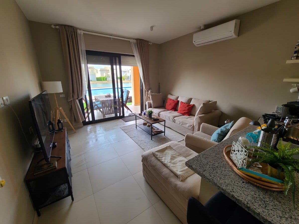 Cheerful spacious apartment sleeps up to 6 guests comfortably, located in Gouna's only beachfront community “MANGROOVY”. Long beach & 6 swimming pools. 3 minutes walk to the beach & 10 min to the Marina. Private access to 100m rooftop terrace furnished with cosy outdoor furniture overlooking huge pool. The sun deck is great feature of this unique apartment The interior styling is homey to ensure enjoying a relaxing vacation. The apartment is perfect for couples & larger families.